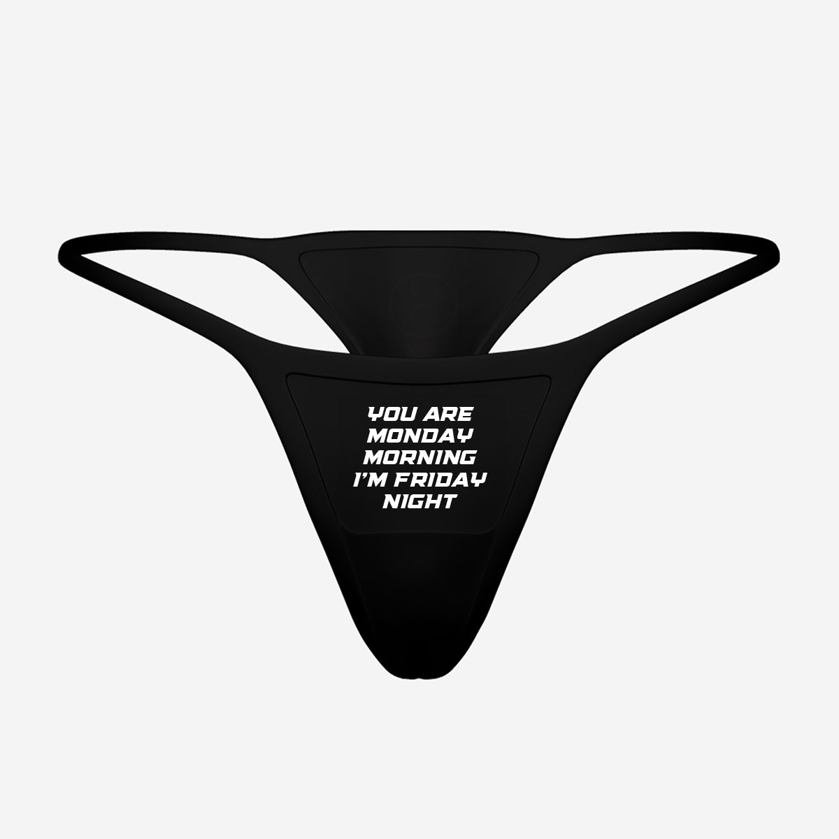 The 'You're Monday Morning. I'm Friday Night' thong: perfect for reminding them that you’re the party they’ve been waiting for.